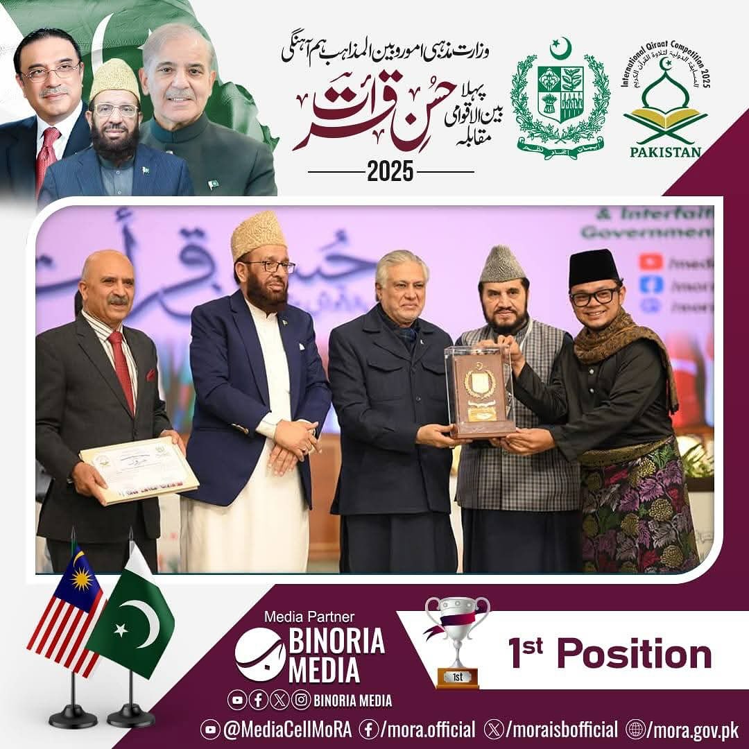 Wakil Malaysia, Aiman Ridhwan bin Mohamad Ramlan, muncul juara 1st International Qira’at Competition 2025 yang berlangsung dari 24 hingga 27 November di Pusat Konvensyen Islamabad, Pakistan.