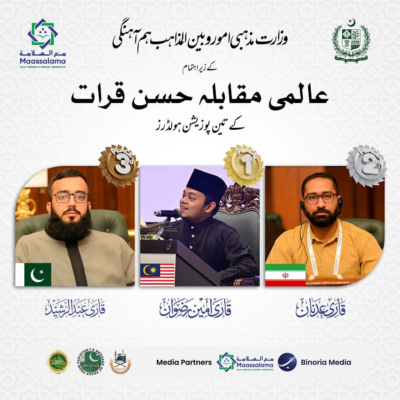 Menerusi hantaran Jabatan Kemajuan Islam Malaysia – JAKIM di Facebook, pertandingan anjuran ‘Government of Pakistan Ministry of Religious Affairs’ itu menghimpunkan 36 qari dari negara anggota OIC, menjadikannya antara pentas tilawah antarabangsa paling berprestij.