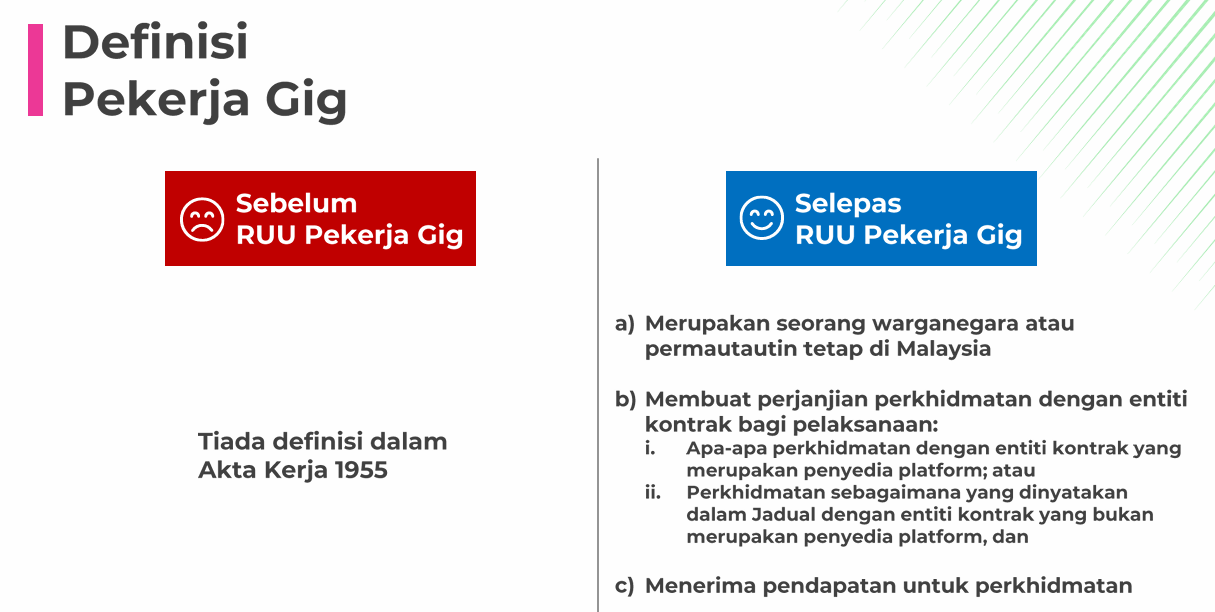 Sebelum ini, tiada definisi khusus bagi pekerja gig dalam Akta Kerja 1955.