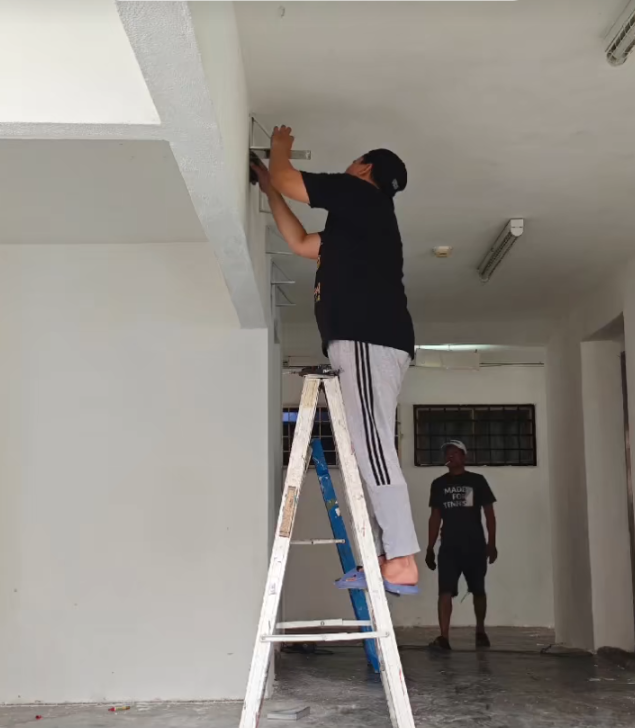 “Hasil gotong royong bekerjasama mencantikkan lobi lif tingkat masing-masing.. Ini hasil dari kami tingkat 11 Blok B PPR Pantai Ria,” tulisnya dalam klip berkenaan.